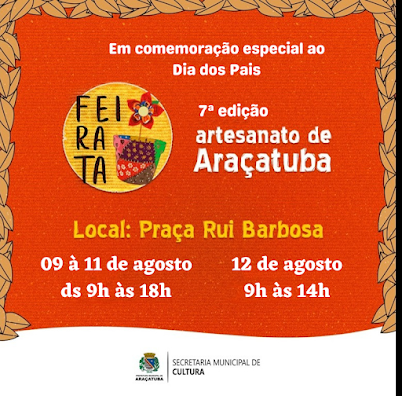 A Secretaria Municipal de Cultura de Araçatuba vai realizar na próxima semana a 7ª edição da "Feirata" (Feira de Artesanato de Araçatuba).